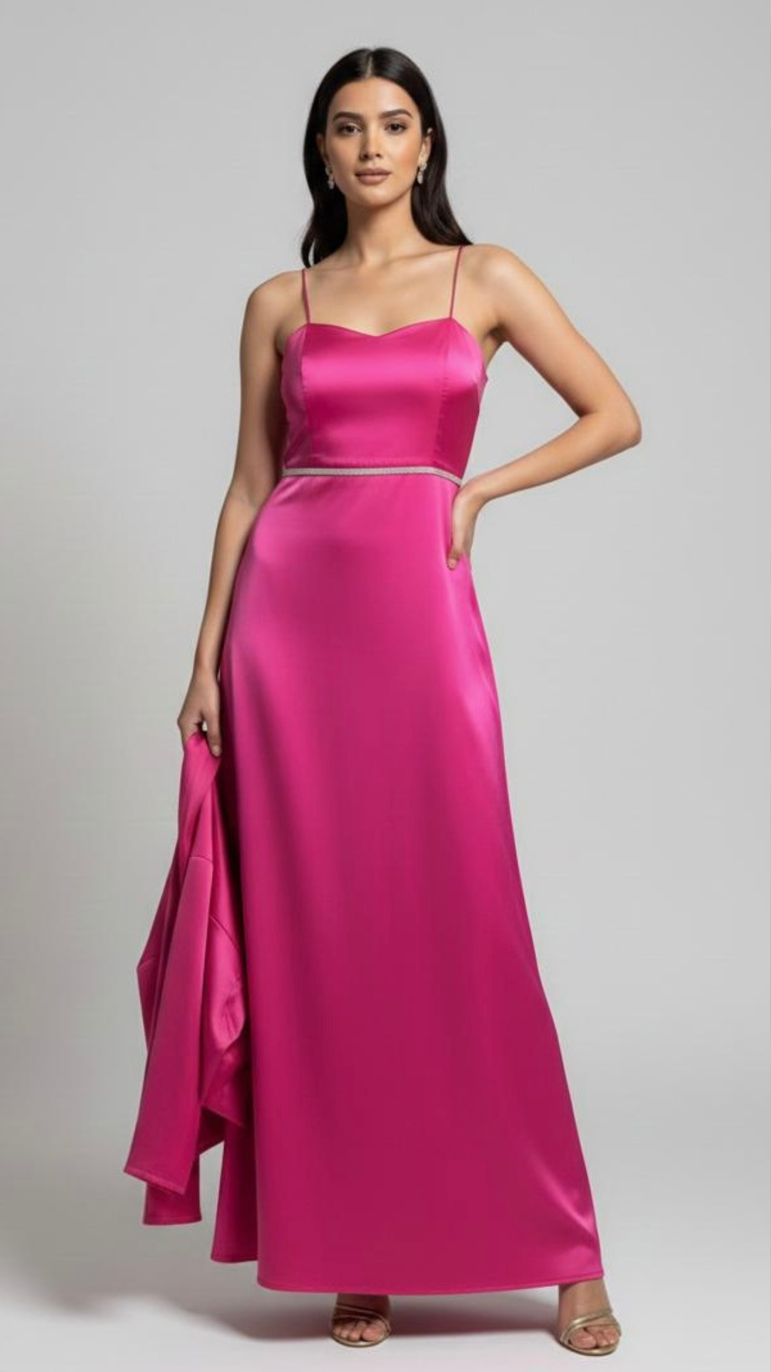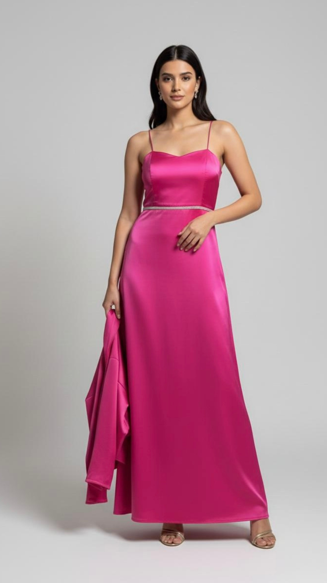 Elegant Satin pink Maxi Dress with Jacket